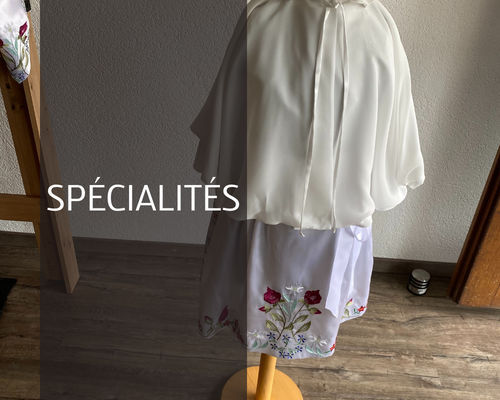 Mon apprentissage de couturière a eu lieu chez Jok’Import. J’ai ensuite travaillé à Lausanne dans un magasin qui confectionnait les vêtements du prototype jusqu’à la vente en magasin durant 9 ans. Revenue en Valais, j’ai commencé à faire des retouches pour plusieurs magasins, dont un durant 5 ans. Par la suite, j’ai été formée durant 4 ans dans un atelier de broderie artisanale de la région en confectionnant plus particulièrement des drapeaux et des broderies pour costumes.